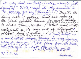 Copyright 2012 M. A. Leal -- one of the mail artists I met while mentoring IUOMA newcomers -- who lives on Terceira Island in the Portugese archipelago of Azores. I'm delighted that the sweet ladybug on the tulip made it across the miles.
